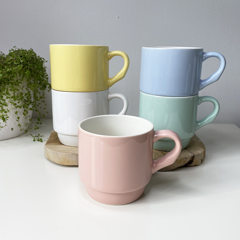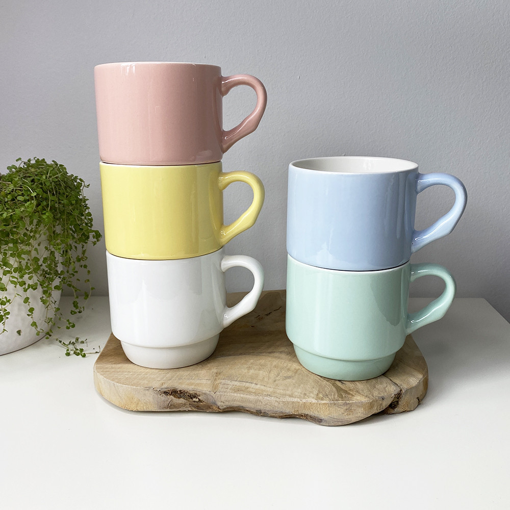 KERAMICKÝ STOHOVATELNÝ HRNEK V PASTELOVÝCH BARVÁCH