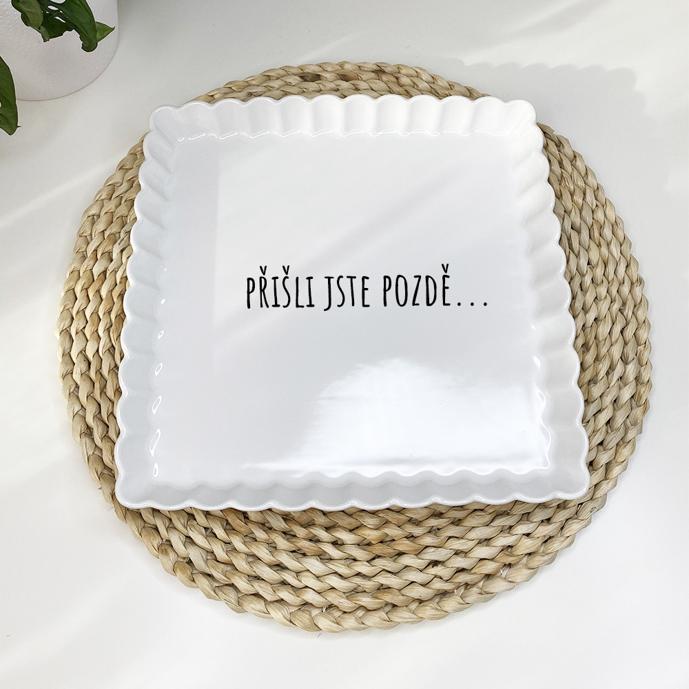 Keramická dezertní miska vroubkovaná - "Přišli jste pozdě" (20x20 cm / 25x25 cm)