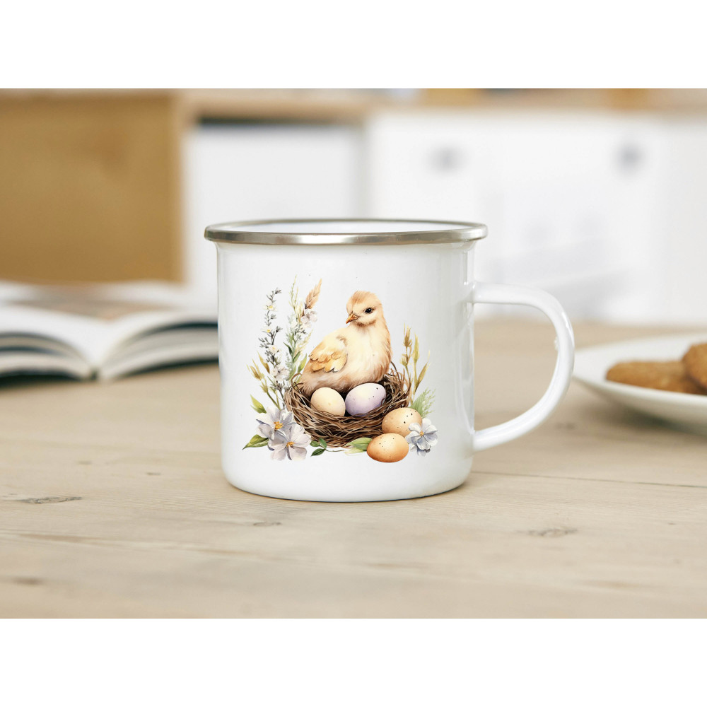 Smaltovaný hrnek s bezpečným nerezovým lemem