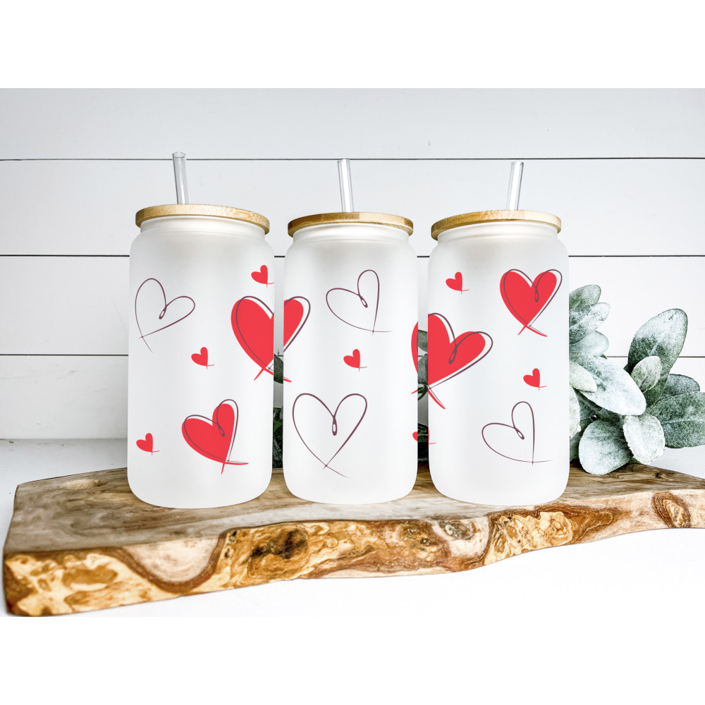 Zahřejte své srdce s naší úchvatnou sklenicí z matného skla zdobenou něžnými srdíčky! Nechte se unést do světa osvěžení s vašimi oblíbenými ledovými kávami nebo osvěžujícími limonádami. S bambusovým víčkem a nerezovým brčkem je naše sklenice nejen stylová, ale i praktická, ideální pro každodenní použití doma nebo na cestách. Přineste si kousek lásky do každého doušku s naší sklenicí plnou radosti!