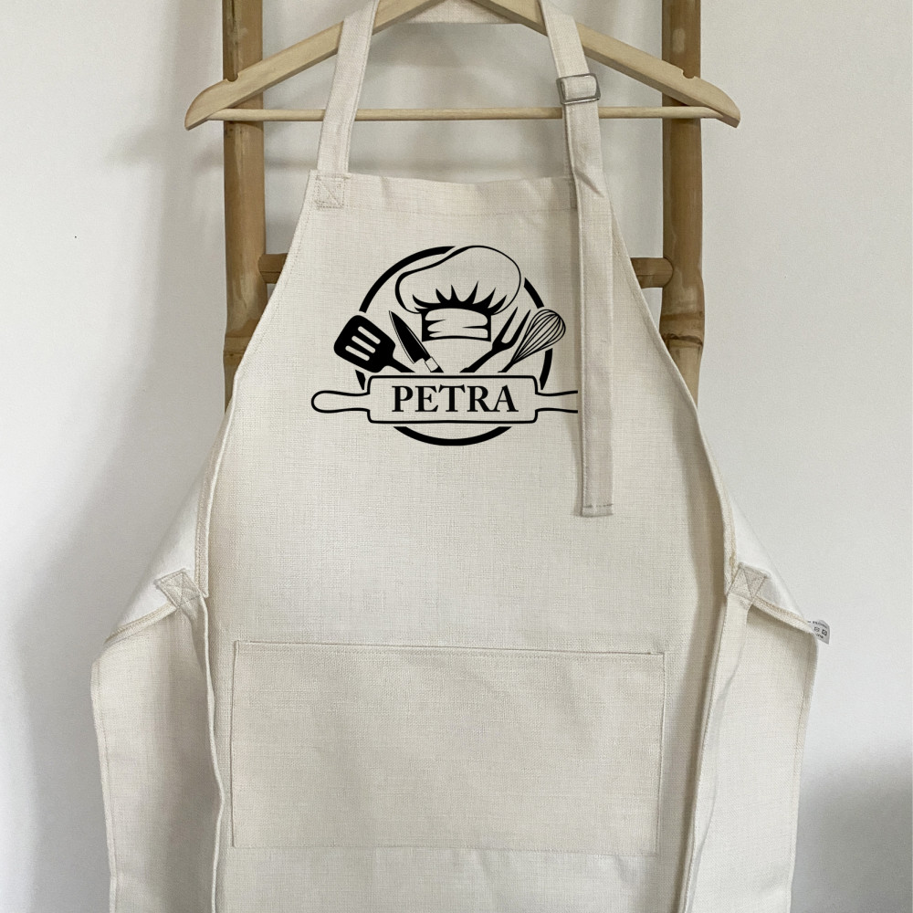 Osobní styl ve vaší kuchyni! Objednejte si naši zástěru se jménem a udělejte z každého vaření osobní zážitek. Kvalitní materiály, elegantní design a vaše vlastní jméno - to vše spojené v jednom praktickém kuchyňském doplňku. Naše exkluzivní zástěry s nastavitelným popruhem s kovovou sponou kolem krku a praktickou velkou kapsou vám nejen poskytnou maximální ochranu před šmouhami a skvrnami, ale také dodají vaší kuchyni špetku elegance.